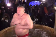 Ինչպես է կիսամերկ Ժիրինովսկին սառնամանիքին մտնում մկրտության ավազանի մեջ (տեսանյ...