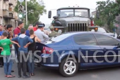 Շղթայական ավտովթար Երևանում. բախվել են ռուսական զինվորական УРАЛ-ը, Peugeot-ն և O...