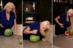 Կինը կրծքերով կիսում է ձմերուկը (տեսանյութ)