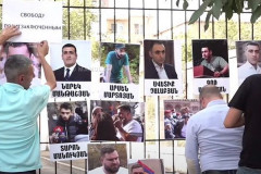 Դատարանի շենքի դիմաց ճաղավանդակներին քաղաքացիները քաղբանտարկյալների լուսանկարներ...