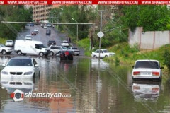 Էրեբունիում անձրեւաջրերը հեղեղել են բնակելի շենքի մուտքը