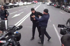 Ոստիկաններն ուժով մահացած զինվորների հարազատներին դուրս են բերում փողոցից