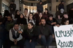 ՈՒՂԻՂ. Դաշնակցական երիտասարդները նախարարության շենքի մոտ սպասում են Արայիկ Հարու...