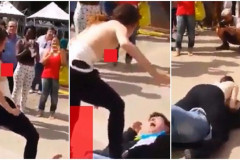 «Կուրծք ես ուզո՞ւմ». կինը տղամարդուն գցում է գետնին ու սկսում կրծքերով խփել նրա ...