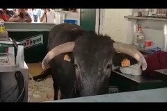 Քաղաքացիները փորձում են դուրս հանել բարի մեջ խցանված ցլին.