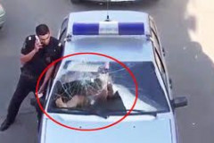 Ռուսաստանում կիսամերկ կինը ջարդում է ոստիկանական մեքենայի դիմապակին՝ ավտոմեքենայ...