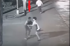 Զայրացած երիտասարդը, ով իր ընկերուհուն բռնացրել է այլ տղամարդու հետ, նետում է ն...