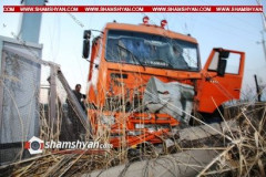 Խոշոր ավտովթար Արարատի մարզում. КамАЗ-ը տապալել է էլեկտրասյուներն ու երկաթբետոնե...