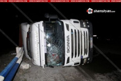 Տիգրանաշենի (Քյարքիի) ոլորաններում մի քանի տոննա ծխախոտով բարձված բեռնատարը կողա...