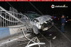 Արգավանդ տանող ավտոճանապարհին ավտոմեքենան բախվել է ճանապարհի արգելապատնեշին, վար...