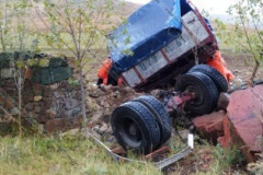 Խոշոր ավտովթար Լոռիում. մեքենան բախվել է շինության պատին եւ կողաշրջվել (ֆոտո)