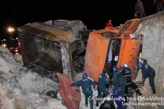 Դիլիջանի ոլորաններին բեռնատարը դուրս է եկել ճանապարհի երթեւեկելի հատվածից եւ կող...