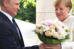 Պուտինը Մերկելին սպիտակ վարդերով ծաղկեփունջ է նվիրել (ֆոտո)