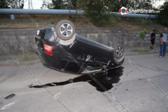 Երևանում տեղի ունեցած ավտովթարի ժամանակ մեքենաներից մեկը գլխիվայր շրջվել է