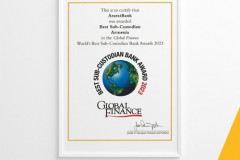 ԱրարատԲանկը՝ 2023թ.-ի Լավագույն ենթապահառու բանկ ՀՀ-ում՝ ըստ Global Finance ամսագրի