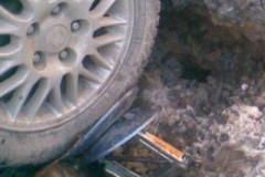 Ավտոմեքենայի անիվը արգելափակվել է փոսի մեջ