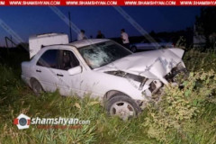 Երևան-Գյումրի ավտոճանապարհի ավտոմեքենան բախվել է ճամփեզրի բետոնե արգելապատնեշին,...