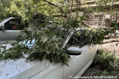 Երևանի Պուշկինի փողոցում ծառը կոտրվել է և ընկել ավտոմեքենայի վրա՝ երկկողմանի փակ...