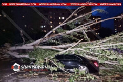 Երեւանում հսկայական բարդին արմատից պոկվել ու տապալվել է՝ վնասելով կայանված մի քա...
