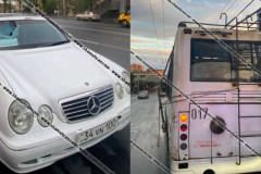Երևանում տրոլեյբուսի էլեկտրահաղորդիչի ձողը պոկվել և վնասել է Mercedes-ը. բժիշկնե...