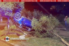Երևանում Toyota Vitz-ը բախվել է ծառին և գլխիվայր շրջվել