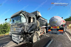 Ուշիի ոլորաններում բախվել են «SHACMAN» ինքնաթափ և «VOLVO» գլանատակառ բեռնատարները
