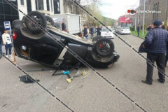 Գորիսում բախվել են 07-ն ու Mitsubishi Pajero io-ն. վերջինս գլխիվայր շրջվել է