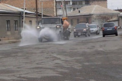 Էջմիածնում քլորաջրով մաքրվում են թաղամասերը, փողոցներն ու մայթերը (վիդեո)