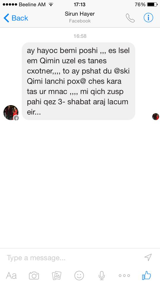 ԲլոգԴերասան Սոս Ջանիբեկյանը իր ֆեյսբուքյան էջում գրում է.