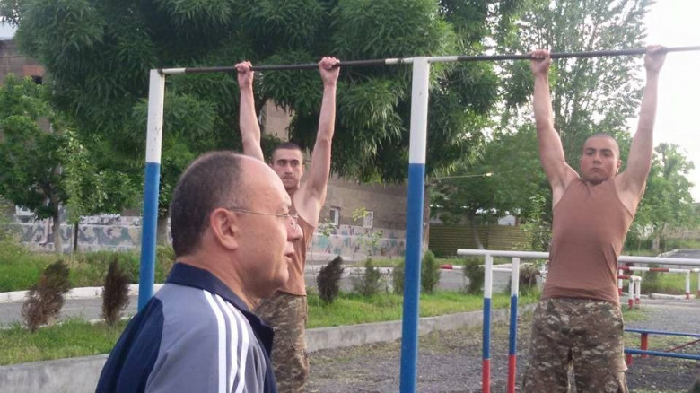 Առավոտյան մարմնամարզությունը զորամասում նախարարի ներկայությամբ