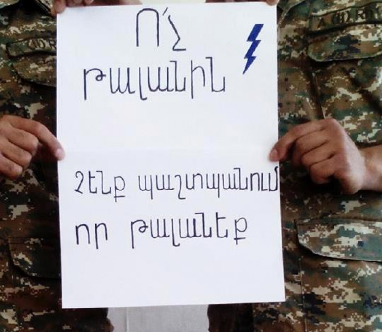 Զինվորները ևս միացան էլեկտրաէներգիայի սակագնի բարձրացման դեմ պայքարին (ֆոտո) Բլոգ 24 Հունիս, 2015 13:34 Կիսվել Բանակի զինվորները վիրտուալ միացել են Երևանում բողոքող ցուցարարներին։ Nikolay Torosyan Կիսվել