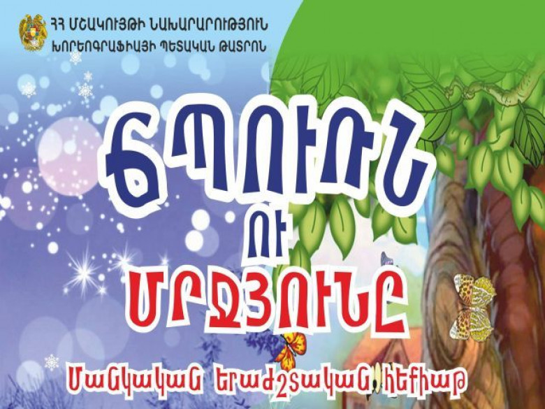 ՄշակույթԽորեոգրաֆիայի թատրոնն իր մանուկ և պատանի հանդիսատեսի դատին կհանձնի նոր երաժշտական, գունեղ ներկայացում: Ինչպես Արմենպրեսին տեղեկացրին ՀՀ մշակույթի նախարարության հասարակայնության հետ կապերի բաժնից, թատրոնը հուլիսի 5-ին Գ. Սունդուկյանի անվան ազգային ակադեմիական թատրոնի բեմում կներկայացնի «Ճպուռն ու մրջյունը» մանկական երաժշտական հեքիաթի առաջնախաղը: