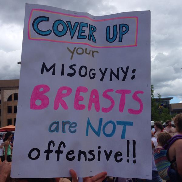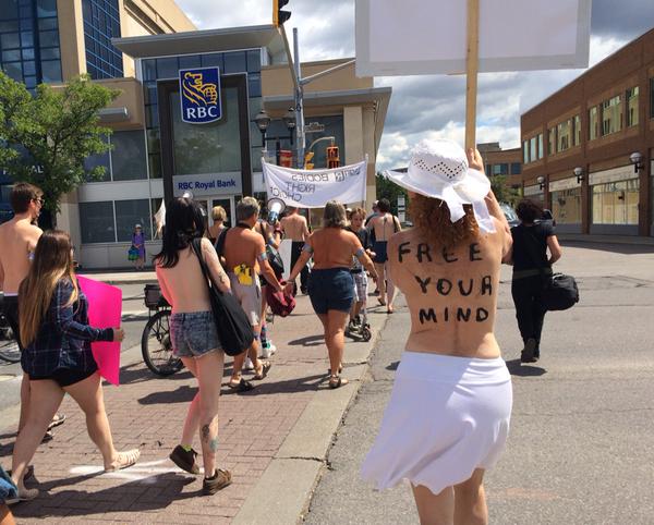 Իսկ Կանադայում տասնյակ կանայք կուրծքները բաց են ցույցի դուրս եկել` հետևյալ կարգախոսով. «Թեթև տարեք. կուրծք է, ռումբ չէ», «Մերկությունը սեքսուալություն չի նշանակում»: