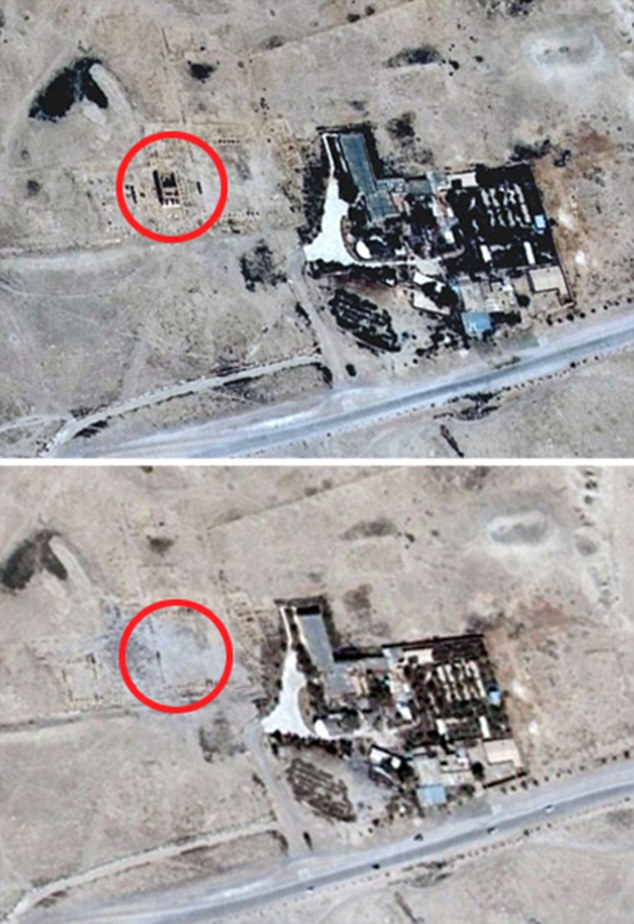 ԻՊ–ի գործողությունների առաջ և հետո արված արբանյակային լուսանկարների դիտարկումից հետո պարզ երևում է, որ 2000 տարվա պատմություն ունեցող հնագույն տաճարը ջնջվել է Երկրի երեսից կրոնի անվան տակ գործող ծայրահեղականների ջանքերով, գրում է աղբյուրը: