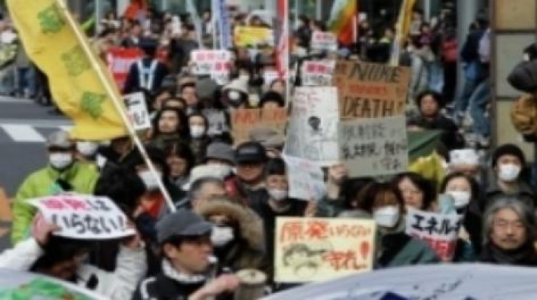 Հավաքվածներն իրենց անվստահությունն են հայտնել վարչապետ Սինձո Աբեի բարեփոխումների կուրսին եւ պահանջում են պահպանել երկրի պացիֆիստական սահմանադրությունը։