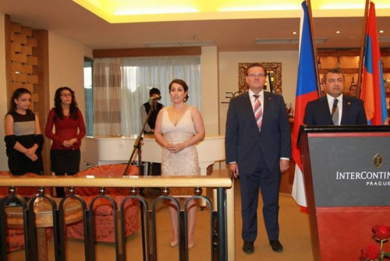 Ելույթներով հանդես են եկել Չեխիայում ՀՀ դեսպան Տիգրան Սեյրանյանը և Սենատի փոխնախագահ Զդենեկ Շկրոմախը: Դեսպան Սեյրանյանը հյուրերին է ներկայացրել Հայաստանի Հանրապետության անցած 24-ամյա ուղին, անցյալի և ժամանակակից մարտահրավերները, անդրադարձավ Լեռնային Ղարաբաղի հիմնահարցին, Հայոց ցեղասպանության 100-րդ տարելիցի միջոցառումներին, Հայաստանի կառավարության եվրոպական, եվրո-ատլանտյան և Չեխիայի հետ երկկողմ համագործակցությանը: Տիգրան Սեյրանյանն իր ելույթում բարձր է գնահատել Չեխիայի հայ համայնքի դերը հայ-չեխական հարաբերությունների զարգացմա ն գործում: