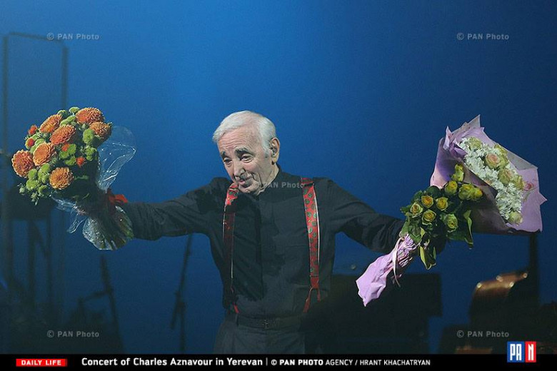 Բազմաթիվ բեմեր ու հանդիսականների ծնկի բերած արտիստը ծաղիկների պակաս չզգաց. ծաղիկներ հանձնելիս երկրպագուներից մեկն անգամ համբուրեց Շառլ Ազնավուրին: