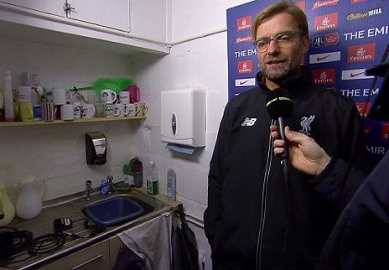 ՍպորտԱնգլիայի գավաթի խաղարկության շրջանակներում «Էքստերի» և «Լիվերպուլի» միջև հանդիպումից առաջ հյուրերի գլխավոր մարզիչ Յուրգեն Կլոպը հարցազրույց է տվել մարզադաշտի խոհանոցում, որտեղ եղել են նաև խոհանոցի աշխատակցուհիները: