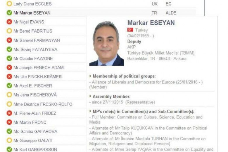 Թուրքիայի մեջլիսի հայ պատգամավորը կողմ է քվեարկել ԵԽԽՎ-ում տապալված հակահայկական զեկույցին