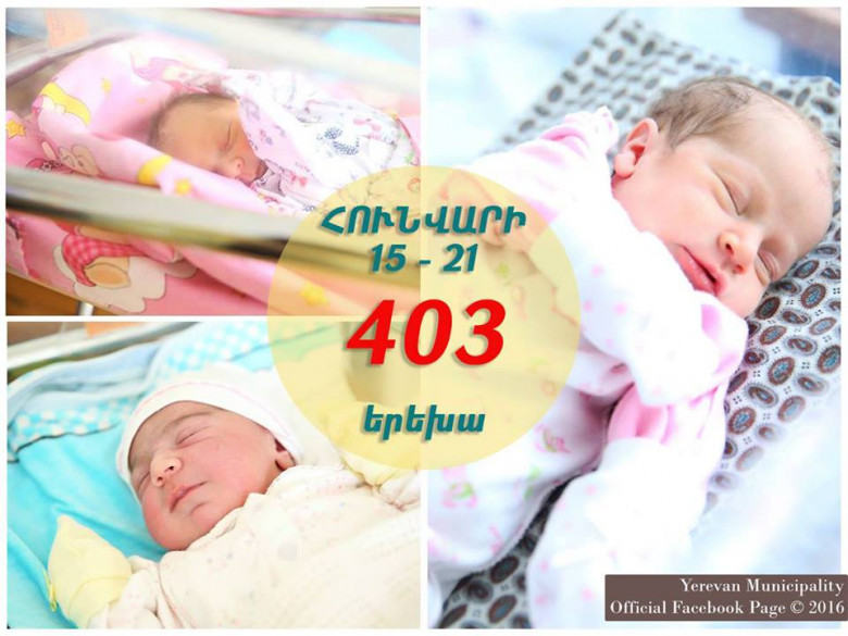 2016 թվականի հունվարի 15-21-ն ընկած ժամանակահատվածում մայրաքաղաքում ծնվել է 403 երեխա՝ 193 տղա, 210 աղջիկ: