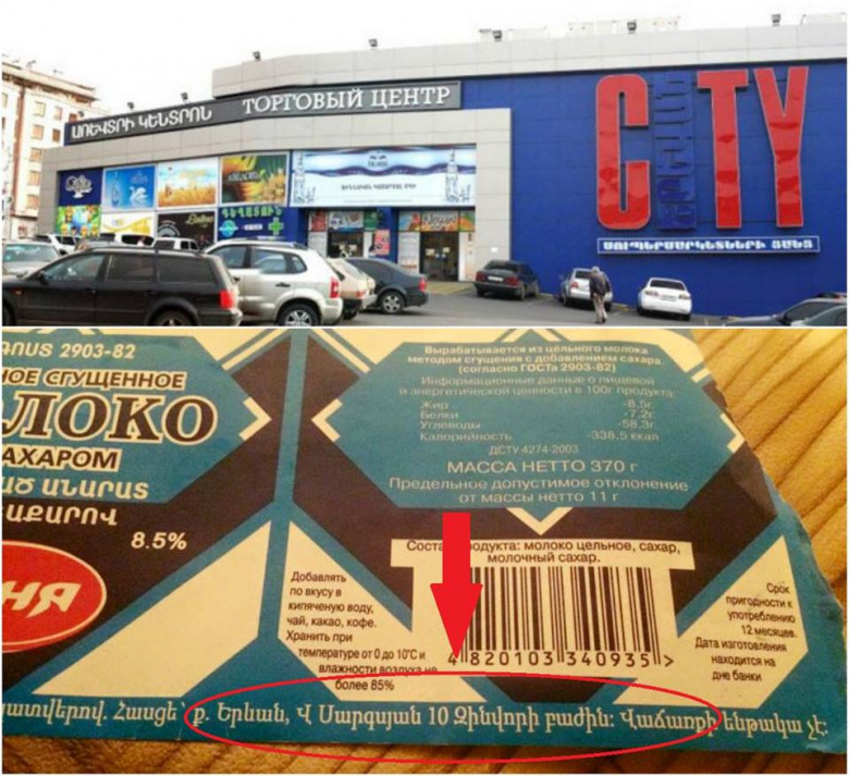 Քաղաքացին հրապարակել է նման խտացրած կաթի պիտակի լուսանկար ու մեկնաբանել․ «Տեսեք ինչ խայտառակություն ա տիրում Yerevan City-ում (ներքևի տողը կարդացեք)»։