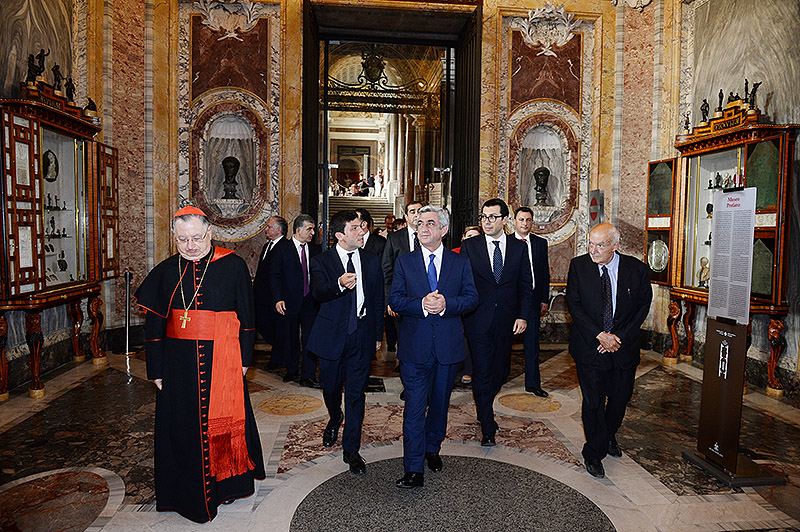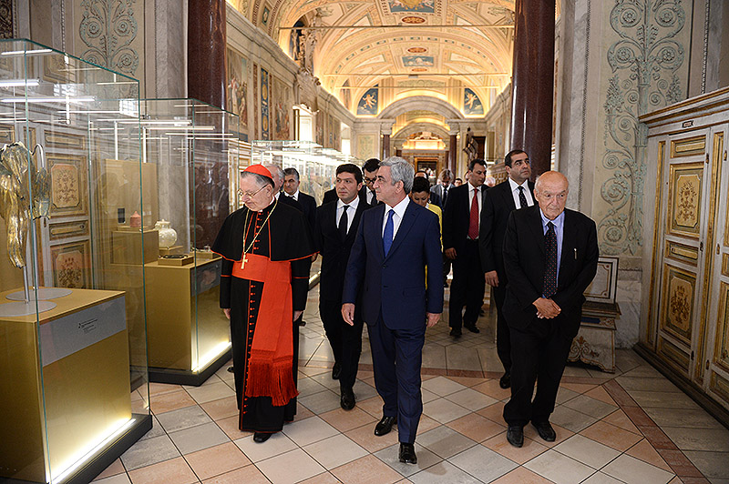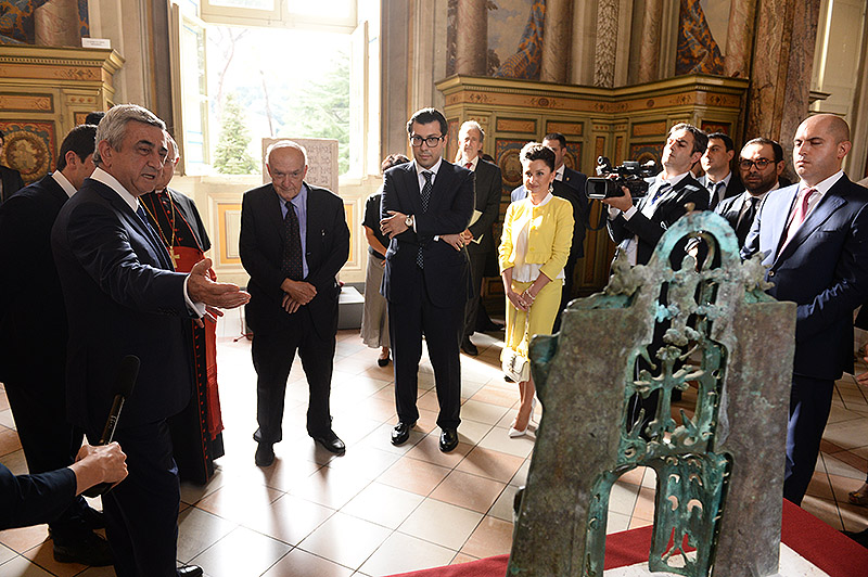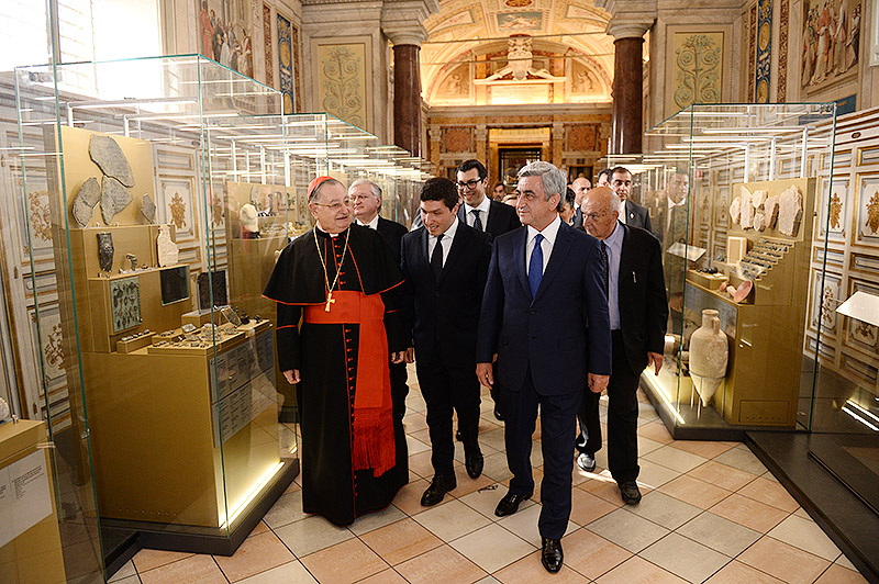 Պաշտոնական այցով Սուրբ Աթոռում գտնվող Նախագահ Սերժ Սարգսյանն այսօր այցելել է Վատիկանյան թանգարաններ, որտեղ նրա մասնակցությամբ բացվել և մշտական ցուցադրության է դրվել հայկական միջնադրարյան խաչքար։ 1246թ. թվագրվող խաչքարը տեղադրվել է Վատիկանյան թանգարանների Ուրբանոս 8-րդ Պապի անվան ցուցասրահում' հանրահայտ Սիքստինյան կապելլայի հարևանությամբ։