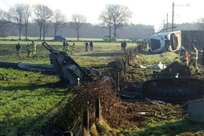 Հոլանդիայի զանգվածային լրատվամիջոցները հրապարակել են լուսանկարներ ողբերգության վայրից, որոնցում երեւում Է, որը գնացքը կողաշրջված Է:
