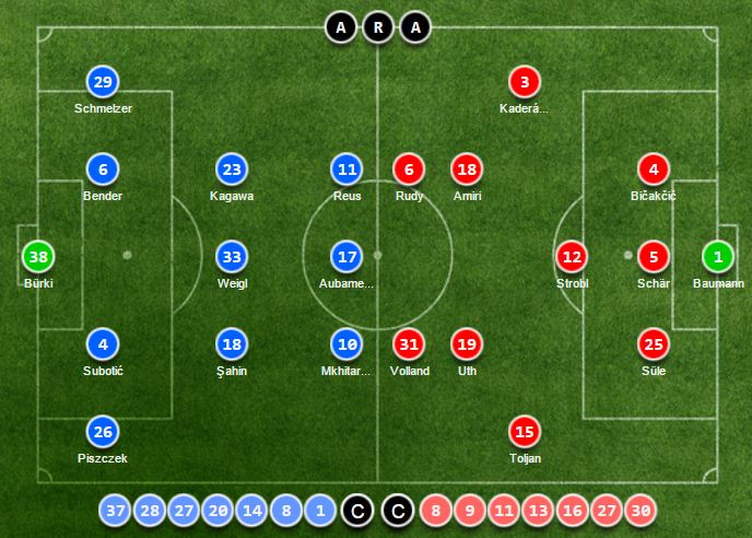 «Բորուսիա». Բյուրկի, Պիշչեկ, Սուբոտիչ, Բենդեր, Շմելցեր, Վեյգլ, Շահին, Կագավա, Ռոյս, Մխիթարյան, Օբամեյանգ: