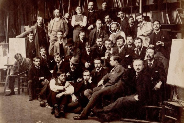 Խոսքը վերաբերում Է այն լուսանկարին, որն արվել Է XIX դարի վերջին Փարիզի Ժյուլիանի ակադեմիայում: Նկարում կարելի Է տեսնել 34 տղամարդկանց, այդ թվում՝ նկարիչներ Պոլ Գոգենին եւ Ժան Էդուար Վյույարին: Կենտրոնում գտնվում Է մեկը՝ սպիտակ վերնաշապիկով եւ բաճկոնակով, որն Էլ, դե Ռոբերտիսի կարծիքով՝ Վան Գոգն Է: