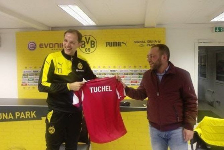 Դորտմունդի «Բորուսիա»-ի առաջին թիմի մարզումից հետո մեր մարզիչների հետ հանդիպել է թիմի գլխավոր մարզիչ Թոմաս Տուխելը: Չնայած նախապես եղել է պայմանավորվածություն, որ հանդիպումը տևելու է կես ժամ, սակայն ծավալվել է շատ հետաքրքիր քննարկում ֆուտբոլային տարբեր հարցերի շուրջ: Մեր մարզիչները մի շարք հարցեր են ուղղել Տուխելին՝ մարզումային գործընթացի, ֆուտբոլիստների հետ տարվող աշխատանքների, տակտիկական նրբությունների վերաբերյալ: Մոտ մեկուկես ժամ տևած հանդիպման վերջում ՀՖՖ պատվիրակությունը Հայաստանի ազգային հավաքականի անվանական մարզաշապիկ է նվիրել Թոմաս Տուխելին:
