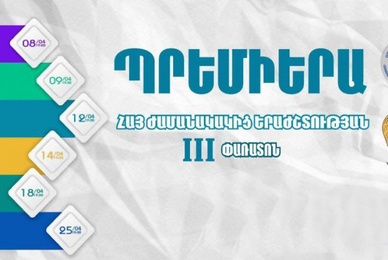 «Պրեմիերա» խորագիրը կրող փառատոնն իր ձևաչափով առանձնանում է նրանով, որ նախագծի ընթացքում ստեղծագորւթյունների մեծ մասը կկատարվեն առաջին անգամ, իսկ հայ կոմպոզիտորների ստեղծագործությունները կհնչեն Հայաստանի ազգային ֆիլհարմոնիկ, Հայաստանի պետական երիտասարդական, Ալ. Սպենդիարյանի անվան օպերայի և բալետի ազգային ակադեմիական թատրոնի նվագախմբերի, Հայաստանի պետական կամերային, Երևանի պետական կամերային երգչախմբերի, ինչպես նաև առաջատար երաժշտական խմբերի ու մենակատարների կատարմամբ: Ժամանակակից երաժշտության թվով երրորդ փառատոնը կմեկնարկ ի ապրիլի 8-ին՝ Արամ Խաչատրյան համերգասրահում: Փառատոնային մեկ համերգ էլ կնվիրվի տարվա հոբելյաններին: