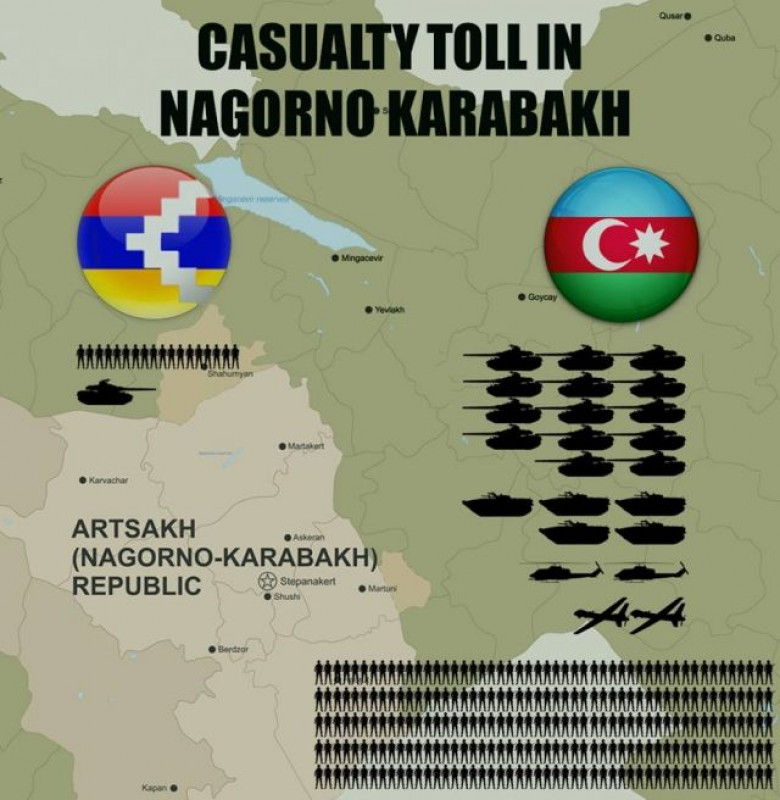 Ղարաբաղա-ադրբեջանական հակամարտ զորքերի շփման գծի ողջ երկայնքով իրավիճակը տակավին մնում է լարված: Առավել ուժգին բախումներ են տեղի ունենում մարտագծի հյուսիսարևելյան և հարավարևելյան ուղղություններում: ՊԲ ստորաբաժանումները Թալիշի ուղղությամբ հակառակորդին հասցնում են կենդանի ուժի և զինտեխնիկայի մեծ կորուստներ: Հաստատված տվյալներով այս հատվածում ադրբեջանական զինուժը կորցրել է 3 տանկ: Հիշեցնենք, որ ևս 2 տանկ և 1 ՀՄՄ հակառակորդն այսօր կորցրել է հարավարևելյան ուղղությամբ: Ընդհանուր առմամբ երեկ և այսօր՝ ադրբեջանական բանակը կորցրել է 14 տանկ և 5-ից ավելի այլ զրահատեխնիկա, այդ թվում՝ հետևակի մարտական մեքենա (ՀՄՄ): Ղարաբաղյան բանակը տվել է 1 տանկի կորուստ: