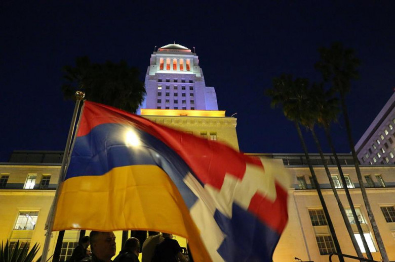 Լոս Անջելեսի քաղաքապետարանի շենքը եռագույն է «ներկվել»՝ ի հիշատակ Արցախում զոհվածների (տեսանյութ) TV 13 Ապրիլ, 2016 12:46 Կիսվել տեսանյութhttps://www.facebook.com/asbarez/videos Կիսվել
