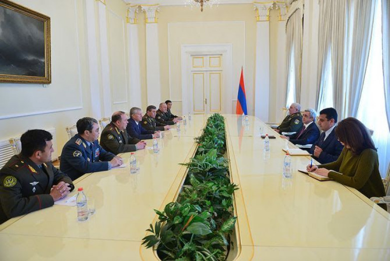 ՔաղաքականՀՀ Նախագահ, Հավաքական անվտանգության պայմանագրի կազմակերպության (ՀԱՊԿ) հավաքական անվտանգության խորհրդի նախագահ Սերժ Սարգսյանն ապրիլի 15-ին ընդունել է ՀԱՊԿ գլխավոր քարտուղար Նիկոլայ Բորդյուժային, ՀԱՊԿ միացյալ շտաբի պետ, գեներալ-գնդապետ Անատոլի Սիդորովին և ՀԱՊԿ անդամ պետությունների` Ռուսաստանի, Բելառուսի, Ղազախստանի, Ղրղզստանի, Տաջիկստանի զինված ուժերի գլխավոր շտաբերի պատվիրակությունների ղեկավ արներին, ովքեր Հայաստան են ժամանել այսօր կայանալիք ՀԱՊԿ ռազմական կոմիտեի ութերորդ նիստին մասնակցելու նպատակով:
